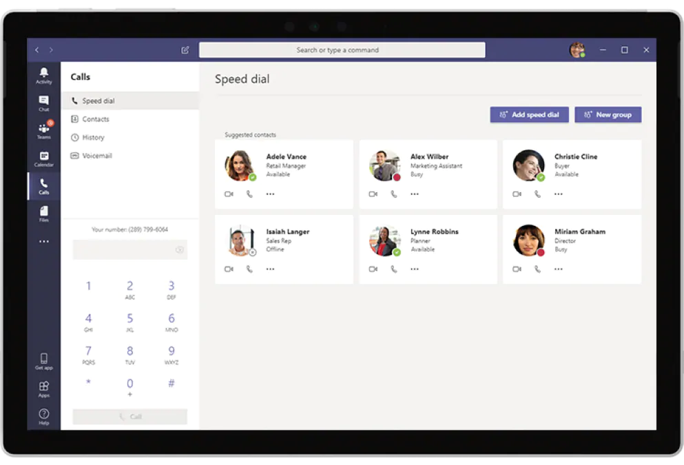 Doormiddel van de koppeling met de telefooncentrale en Teams heeft u hiermee een volwaardige telefonieoplossing met functies zoals keuzemenu, wachtrijen en voicemail.