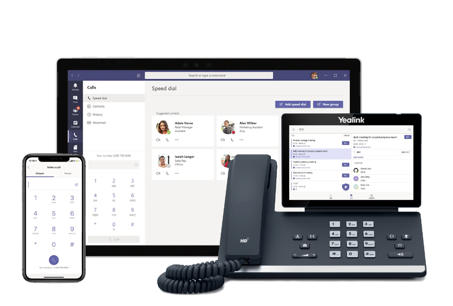Wilt u niet afhankelijke zijn van uw pc, laptop of smartphone? Kies dan voor Yealink IP-telefoons voorzien van Teams software. Met deze telefoons kunt u eenvoudig inloggen met uw Microsoftaccount en heeft u alle functies ter beschikking. U kunt in- en uitloggen op verschillende telefoons waardoor flexwerken heel eenvoudig is.