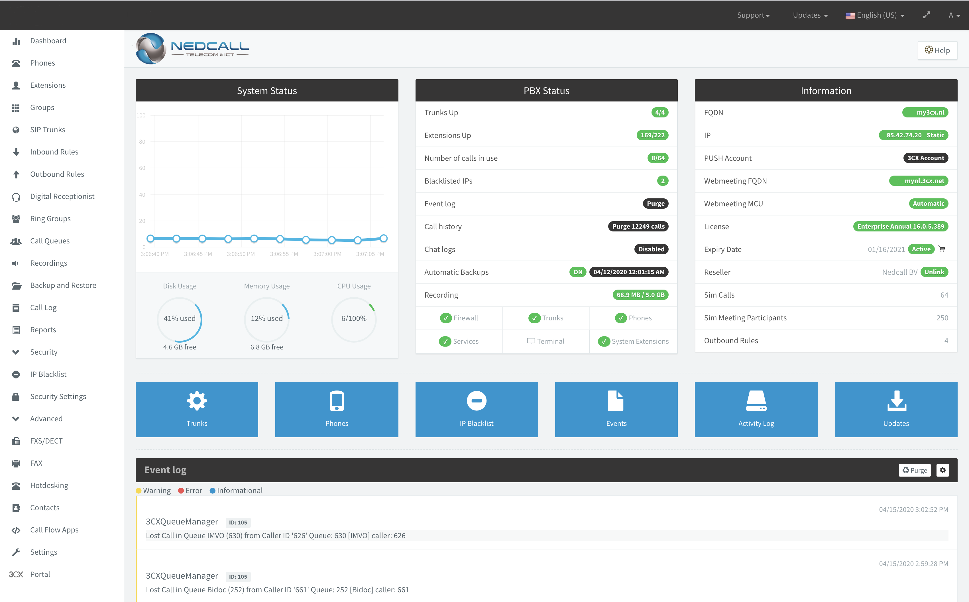 De telefooncentrale beschikt over de nieuwste en meest geavanceerde functies, zoals bijvoorbeeld keuzemenu’s, wachtrijen en routeringen op basis van tijd, plaats en bezetting. Daarnaast zijn vele geavanceerde functies te activeren zoals gespreksopname, koppeling met externe systemen zoals Microsoft 365 en CRM-systemen.