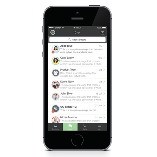 Met de app heeft u direct inzicht in de status van uw collega’s (vrij, in gesprek, niet storen) en heeft u toegang tot het centrale telefoonboek. Daarnaast kunt u chatten, bestanden delen en videobellen binnen dezelfde app.