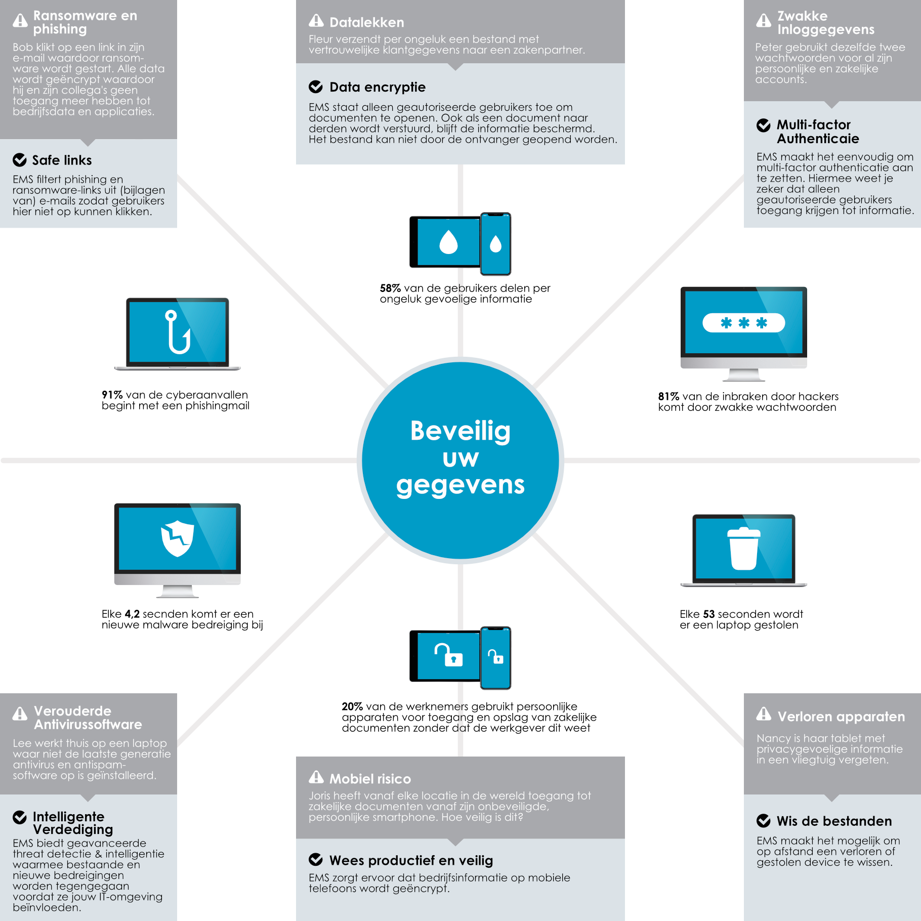 Alle organisaties hebben te maken met het gevaar van cyberaanvallen, maar in de praktijk blijkt dat het MKB vaak niet de kennis en de middelen heeft om zich hiertegen te beschermen. Microsoft Enterprise Mobility & Security (EMS) is onderdeel van de Cloudscape Online Werkplek en biedt hier uitkomst met één geïntegreerde oplossing die bescherming biedt tegen cyberaanvallen en datalekken.